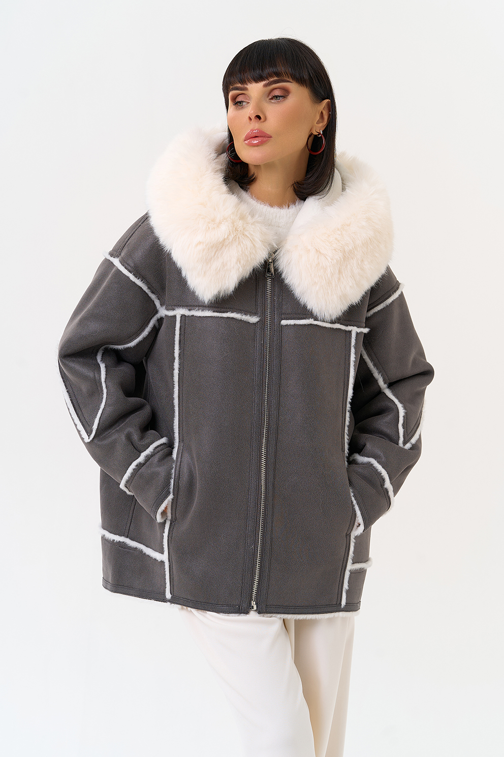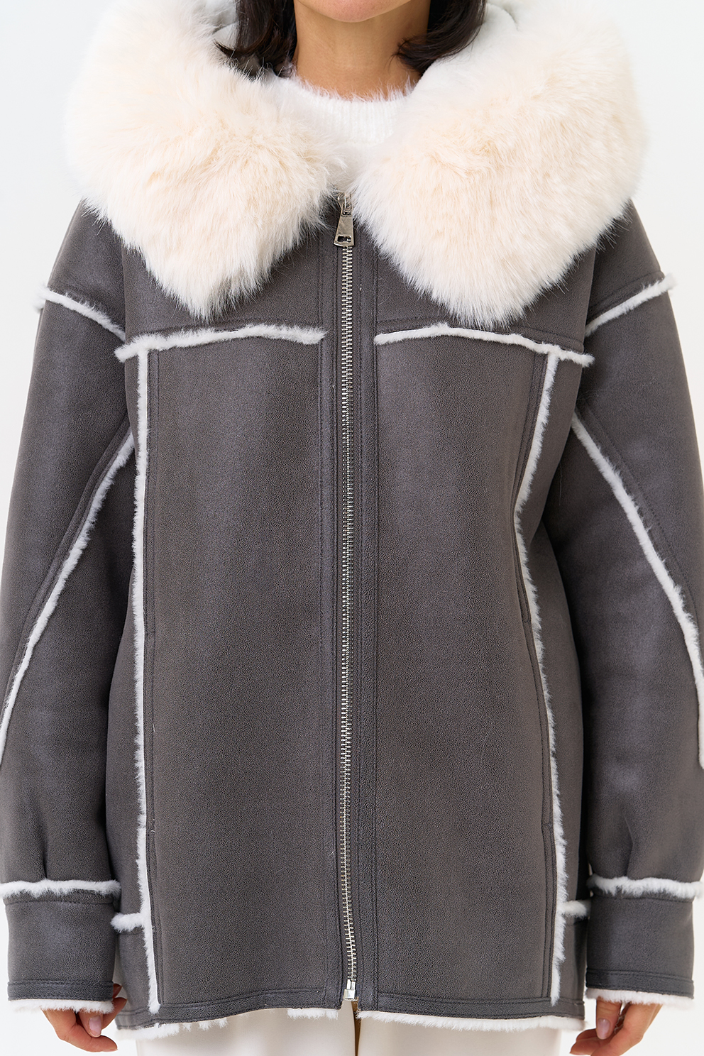 Отделка ворота - эко мех, цвет белый
