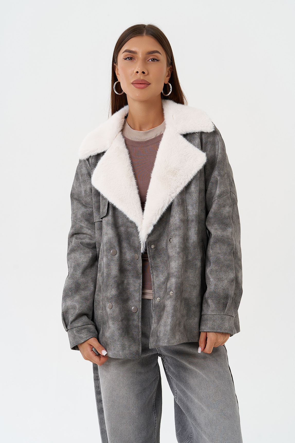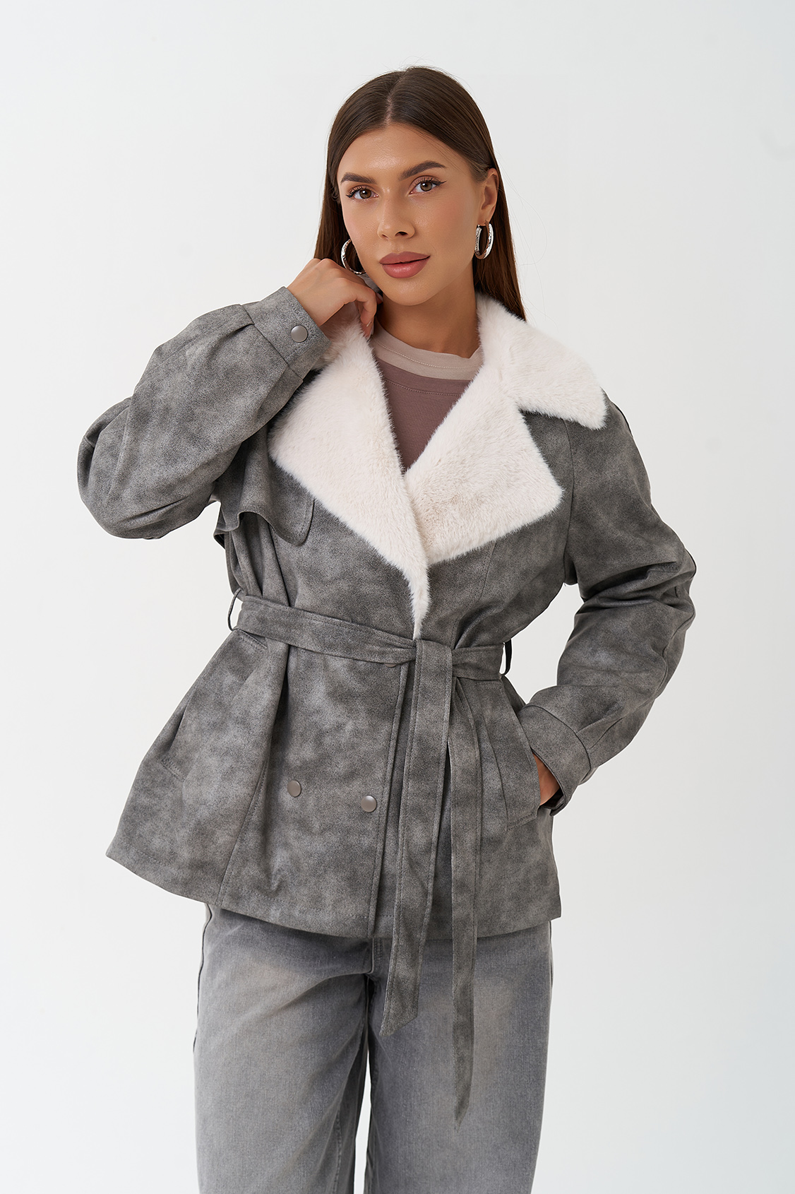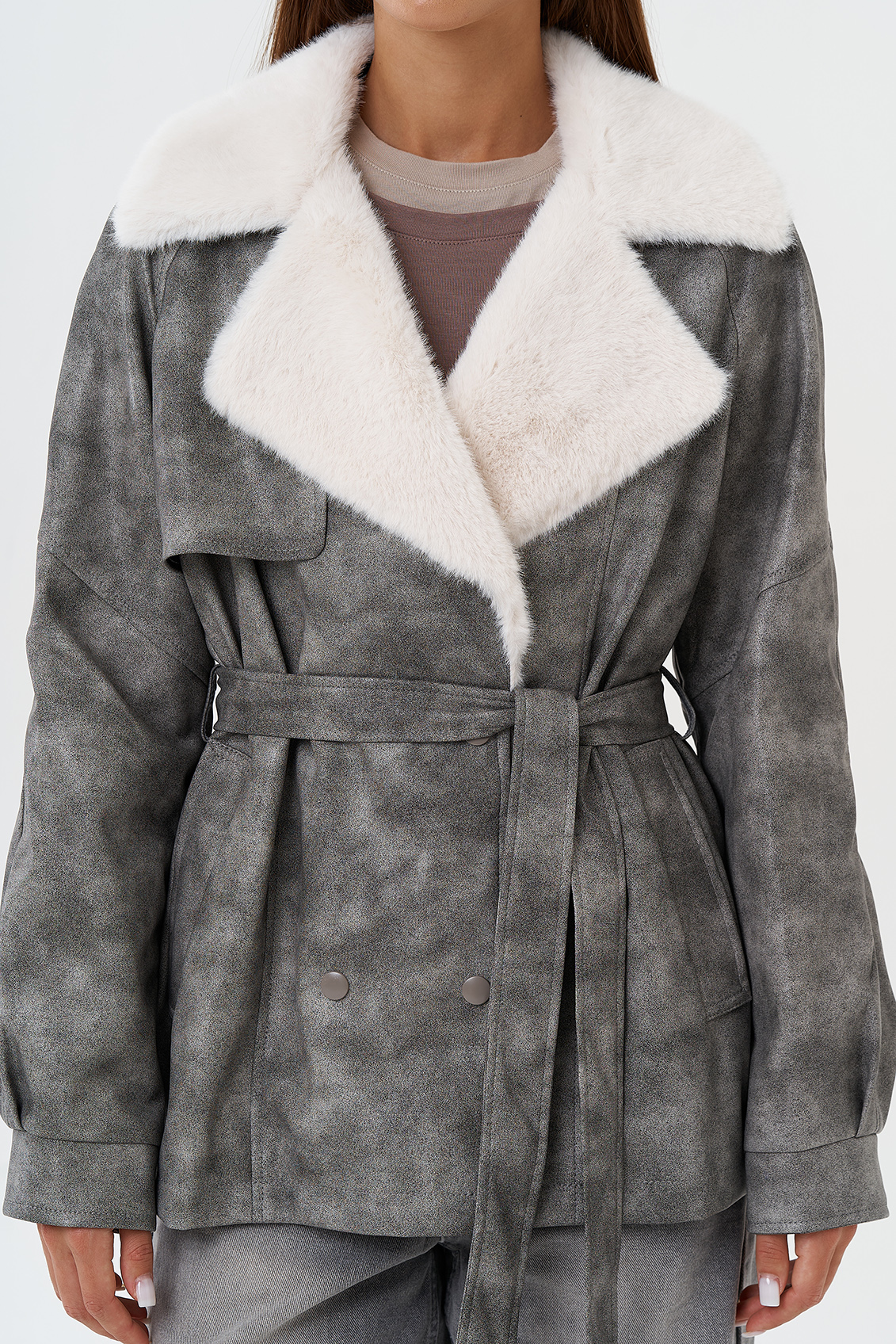 Крой воротника - отложной, отделка эко мех