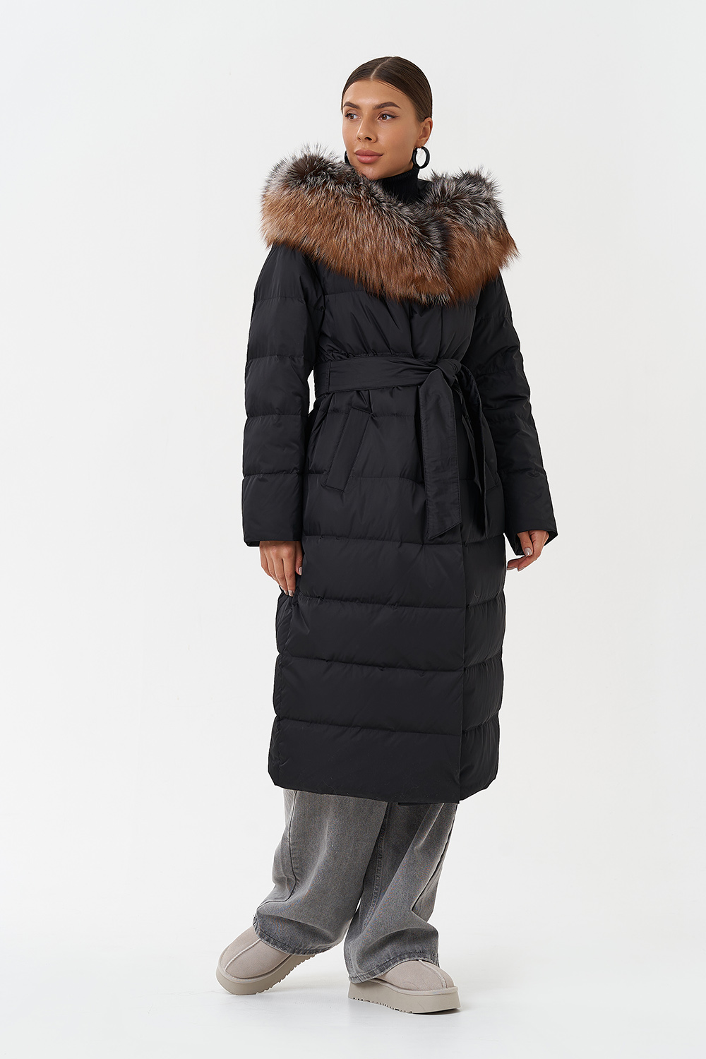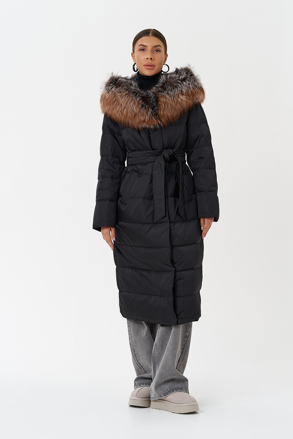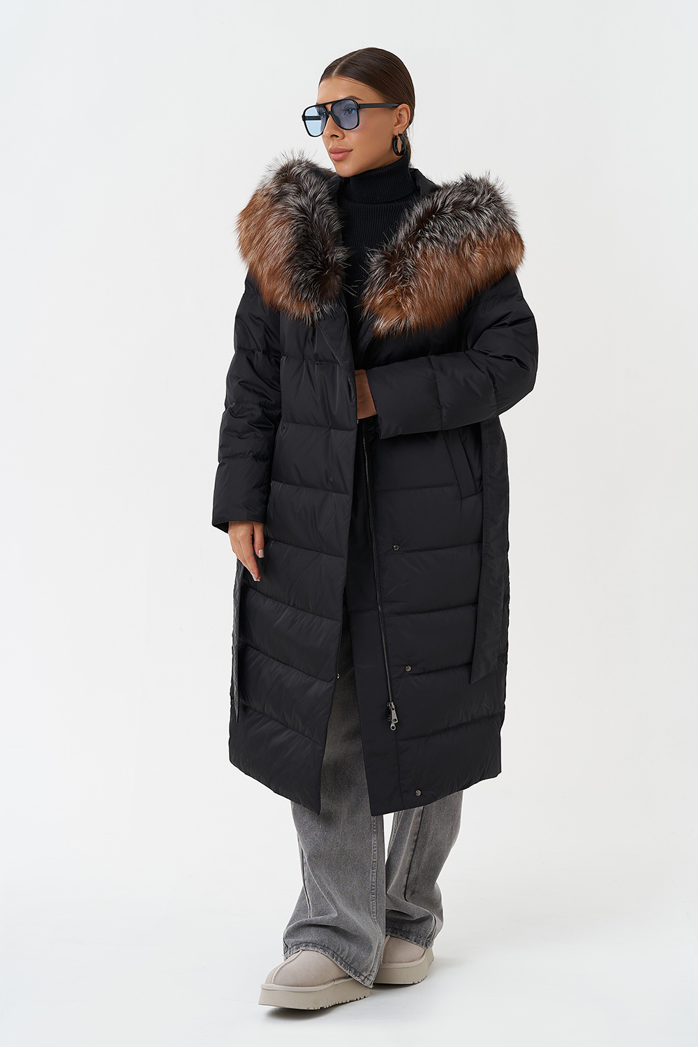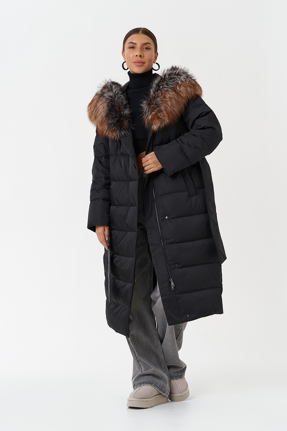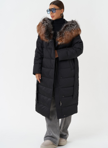 Крой воротника - капюшон, отделка чернобурка