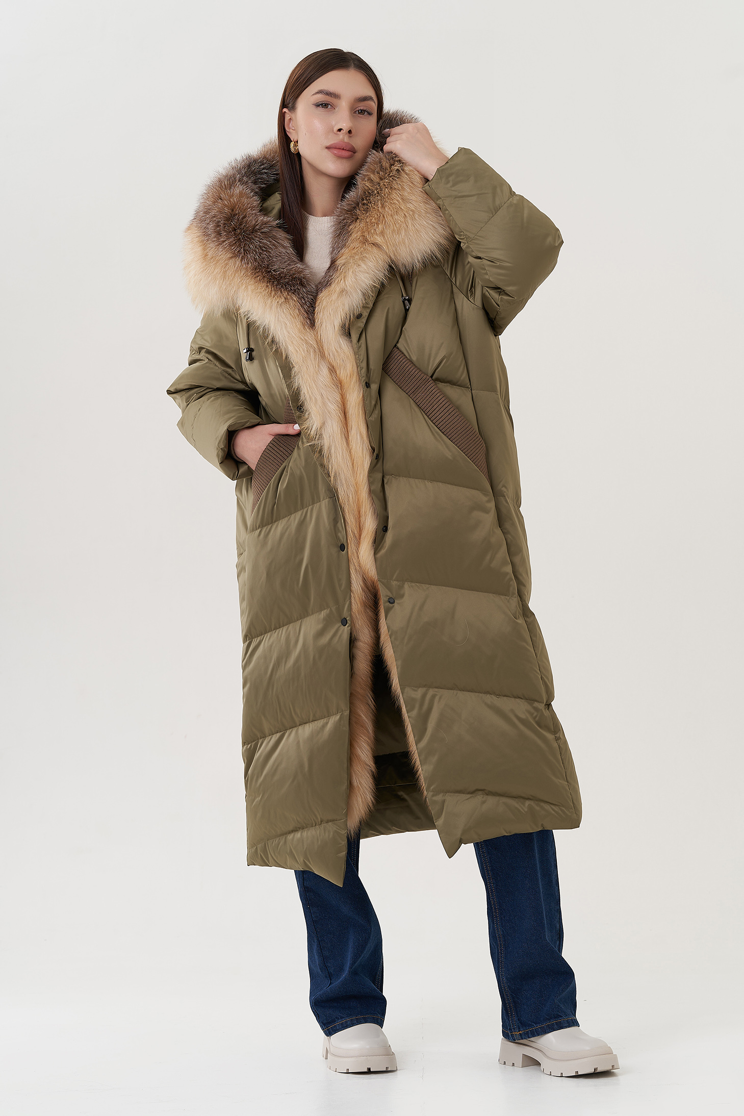 Крой воротника - капюшон, отделка лиса
