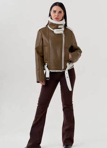 Крой воротника - отложной , отделка овчина белый