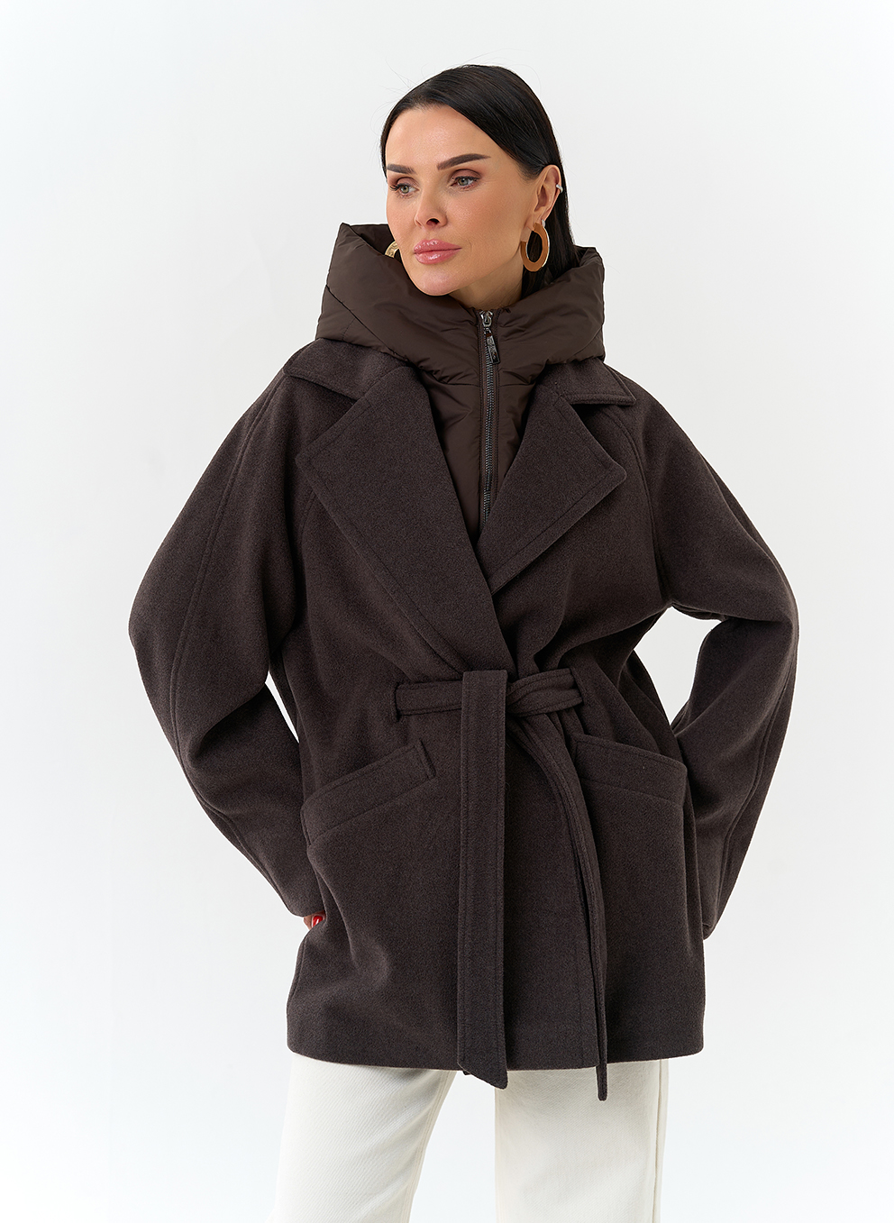 Крой воротника - съемный капюшон, английский воротник