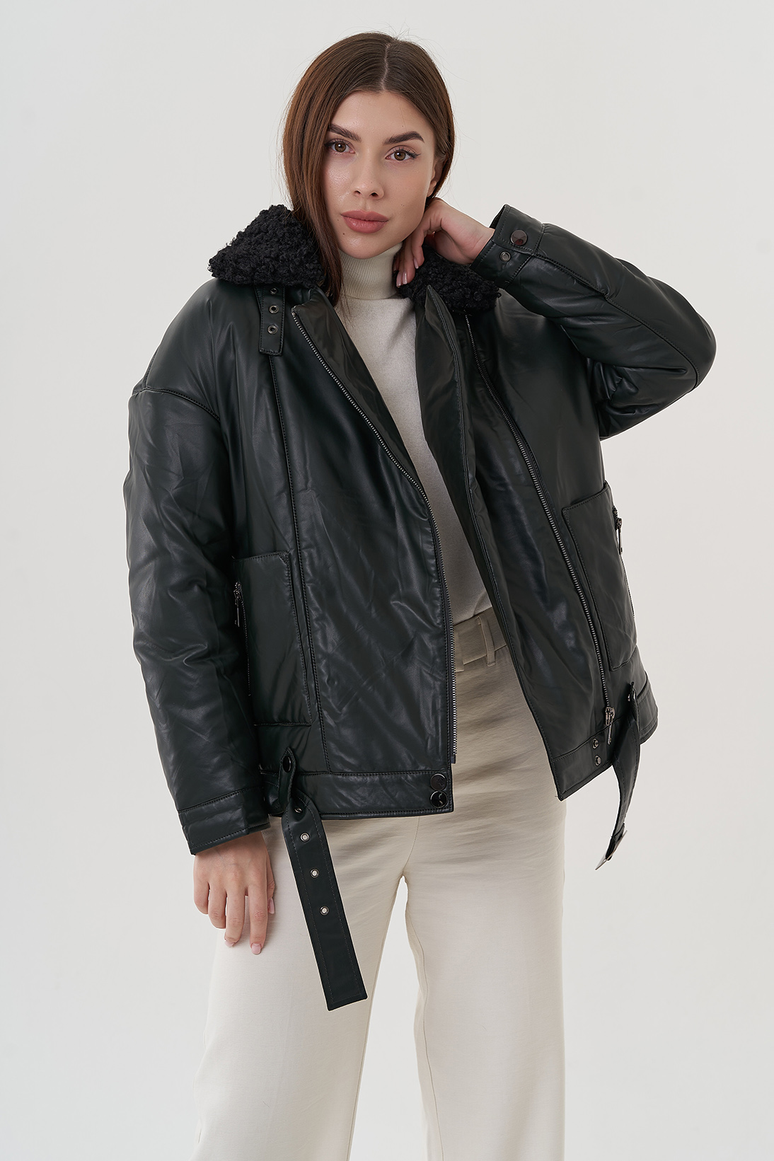 Отделка воротника - искусственный мех, черный под барашка