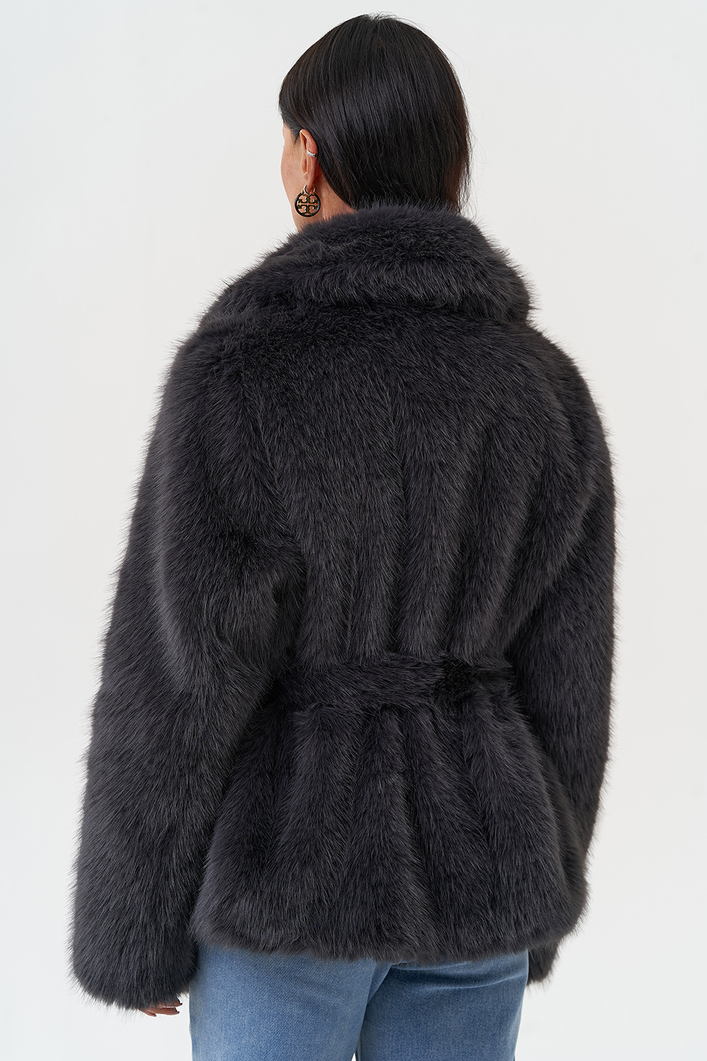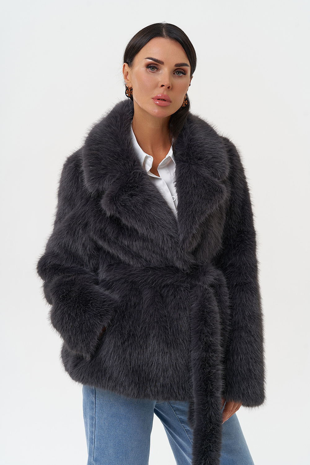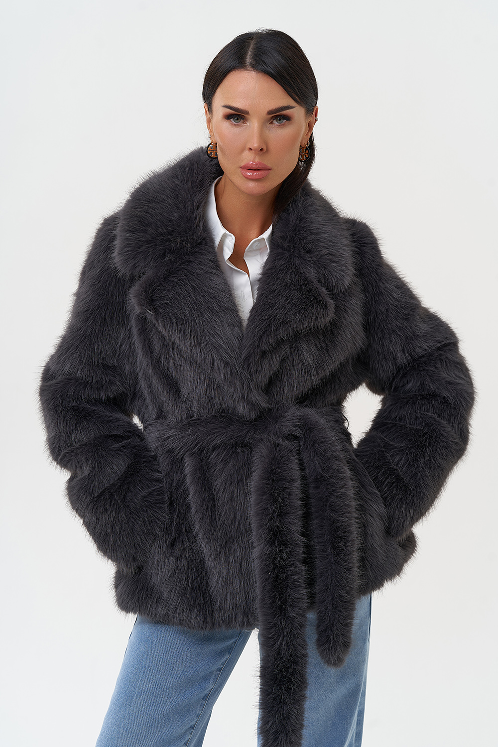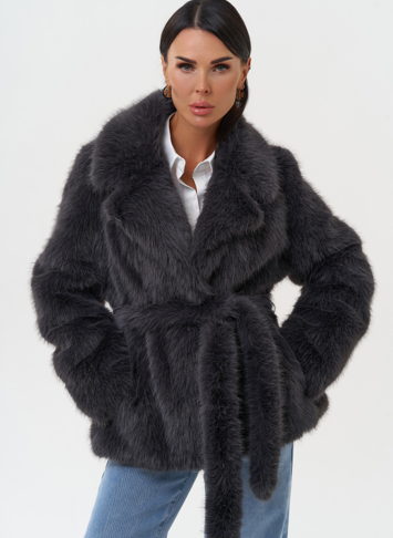 Фасон - прямой Длина изделия - 65 см Цвет - темно-серый Материал - экомех под песца Состав полотна - полиэстер 100% Подкладка - полиэстер 100% Вид застежки -крючки, пояс Вид ворота - английский воротник Фасон рукава - втачной, длинный |