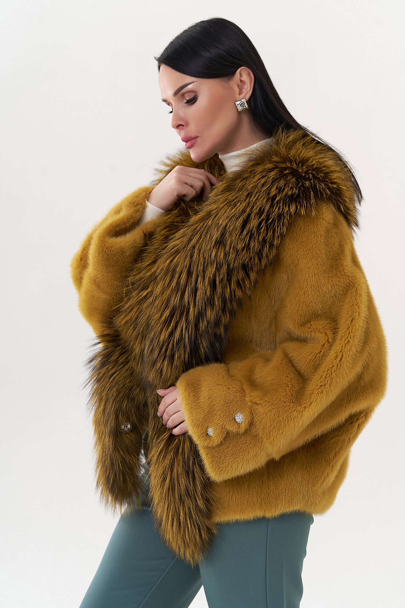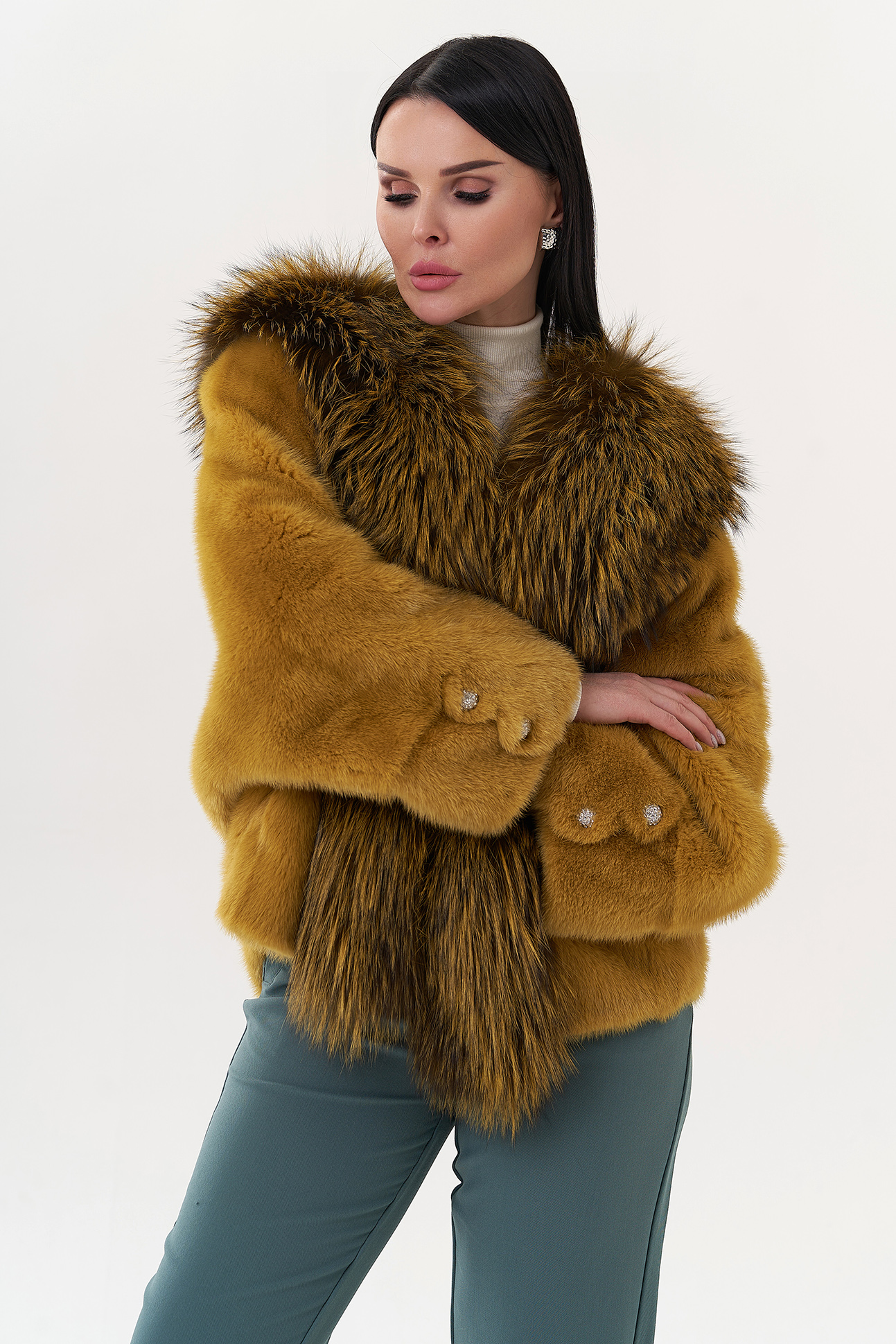 Тип ворота - V - образный воротник, отделка чернобурка