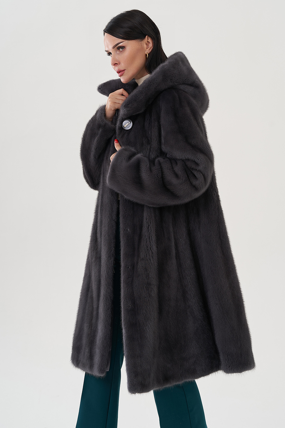 Норковая шуба годе/балетка в роспуск с капюшоном в роскошном цвете графит - это то изделие, в котором и девушка, и более взрослая леди почувствует себя особенно привлекательной. Этот фасон универсален, потому что позволяет экспериментировать с образами благодаря обуви и аксессуарам. Изделие дополнено пуговицами и шубными крючками. Представлен большой размерный ряд от 40 до 52 размера.