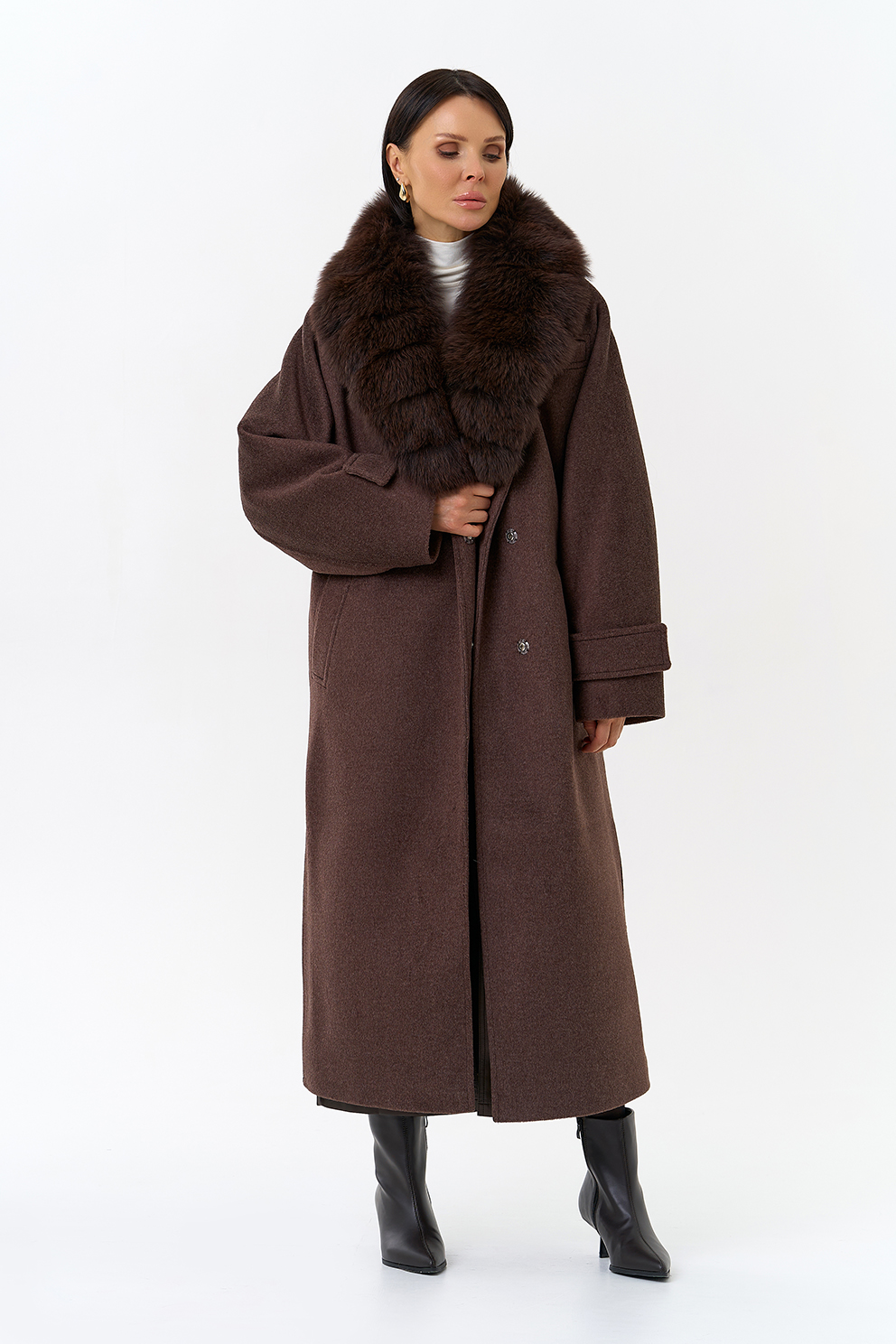 Крой воротника - английский воротник, отделка песец